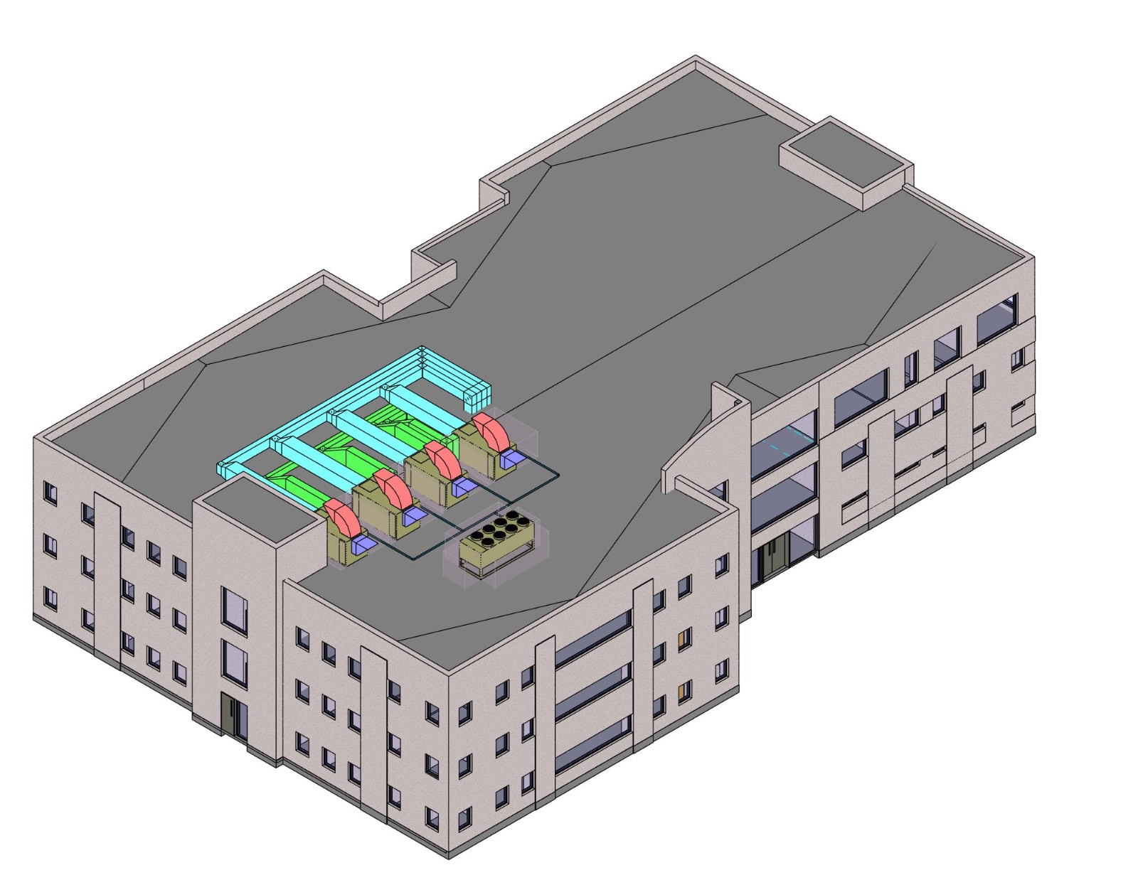 Selama proses seleksi, tim juga mengkaji opsi Variable Refrigerant Flow (VRF) dan Ground Source Heat Pump (GSHP). Namun, konfigurasi AHU + Air-Cooled Chiller + biomass boiler dipilih karena memberikan performa termal terbaik, selaras dengan karakter iklim Manchester dan kebutuhan energi tinggi bangunan layanan medis, sekaligus menekan emisi melalui pemanfaatan biomassa seperti wood pellets/wood chips yang pasokannya stabil di Manchester.