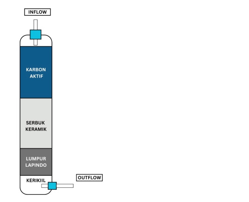 Riset BPS (2024) dan Dinas Lingkungan Hidup Jawa Timur mencatat sebagian besar air tanah di Sidoarjo mengandung besi (Fe) dan mangan (Mn) melebihi baku mutu, yang berisiko pada kesehatan kulit, organ vital, dan perkembangan kognitif. Sementara itu, WRI (2023) memproyeksikan Indonesia akan menghadapi kelangkaan air bersih pada 2050 dengan status medium water stress, diperparah oleh pertumbuhan penduduk, alih fungsi lahan, kemarau, dan pencemaran. Kondisi ini menuntut hadirnya teknologi penyaring air yang efektif sekaligus mampu memanfaatkan limbah pascabencana seperti Lumpur Lapindo.